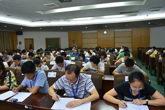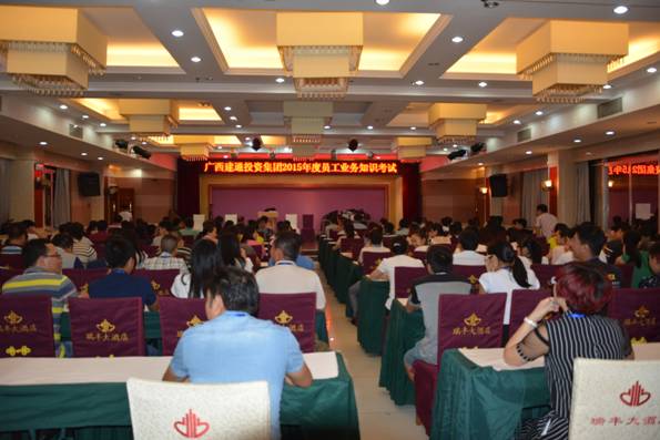 本次考試集團(tuán)領(lǐng)導(dǎo)高度重視,由所有題目均由集團(tuán)董事長親自修撰,并于考前一天密封分別送到百色總部及南寧總部。經(jīng)過學(xué)習(xí)備戰(zhàn)及充分的準(zhǔn)備,9月29日晚上七點(diǎn)半集團(tuán)百色考場(chǎng)和南寧考場(chǎng)同時(shí)開考,兩個(gè)考場(chǎng)均分別請(qǐng)來了幾位特殊的監(jiān)考員,他們都不是集團(tuán)員工,嚴(yán)格的考場(chǎng)紀(jì)律有利于員工們更好地發(fā)揮。在考場(chǎng)里,集團(tuán)百色總部、南寧總部全體員工終于迎來的這一激動(dòng)人心的時(shí)刻。6點(diǎn)鐘下班后,不少員工早已按耐不住內(nèi)心的熱情,早早的到達(dá)考場(chǎng),找到自己的位置后,便開始爭(zhēng)分奪秒的認(rèn)真復(fù)習(xí)起來。時(shí)間一分一秒的過去,員工們也陸陸續(xù)續(xù)的來到了考場(chǎng),對(duì)業(yè)務(wù)知識(shí)掌握較為熟練的員工則靜靜的在考場(chǎng)上調(diào)整好心態(tài)等待考試,雖然還沒有到考試時(shí)間,但考場(chǎng)早已如同考試中一般的安靜。隨著考試鈴聲的敲響,南寧總部在集團(tuán)第二綜合辦公室主任熊莎莎經(jīng)理和監(jiān)考老師的主持下,百色總部在集團(tuán)第五綜合辦主任徐 青的和監(jiān)考老師的主持下,佩戴好工牌靜靜的坐在自己的位置上等待老師下發(fā)試卷。在考試的過程中,每位員工嚴(yán)格要求自己,遵守考場(chǎng)紀(jì)律,都能在規(guī)定的時(shí)間內(nèi)完成所有的答卷。表面似風(fēng)平浪靜,實(shí)際如驚濤駭浪。經(jīng)過長達(dá)1個(gè)小時(shí)的奮戰(zhàn),終于順利地結(jié)束了2015年員工業(yè)務(wù)能力知識(shí)的考試,在監(jiān)考老師的嚴(yán)格監(jiān)督下,考場(chǎng)紀(jì)律井然有序,未發(fā)現(xiàn)有作弊現(xiàn)象,所有考員均有序的離開了考場(chǎng)。離開考場(chǎng)后,大家三三倆倆地聚集在一起,紛紛發(fā)表對(duì)考題的看法,對(duì)計(jì)算題過程結(jié)果進(jìn)行討論,那激動(dòng)熱切的場(chǎng)面如同高考結(jié)束般的放松。