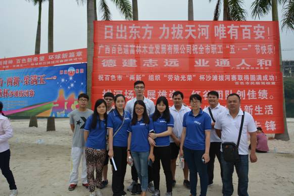 為加強(qiáng)“兩新”組織間的交流合作,展現(xiàn)黨員職工的精神風(fēng)貌,增進(jìn)彼此友誼,讓大家度過一個(gè)愉快的“五一”國際勞動(dòng)節(jié),中共百色市“兩新”黨工委舉辦了百色市“兩新”組織“勞動(dòng)光榮”杯沙灘拔河比賽,我公司響應(yīng)號(hào)召,于2016年4月29日上午08:30,在百色市沙灘公園(百林橋頭)參加了比賽。