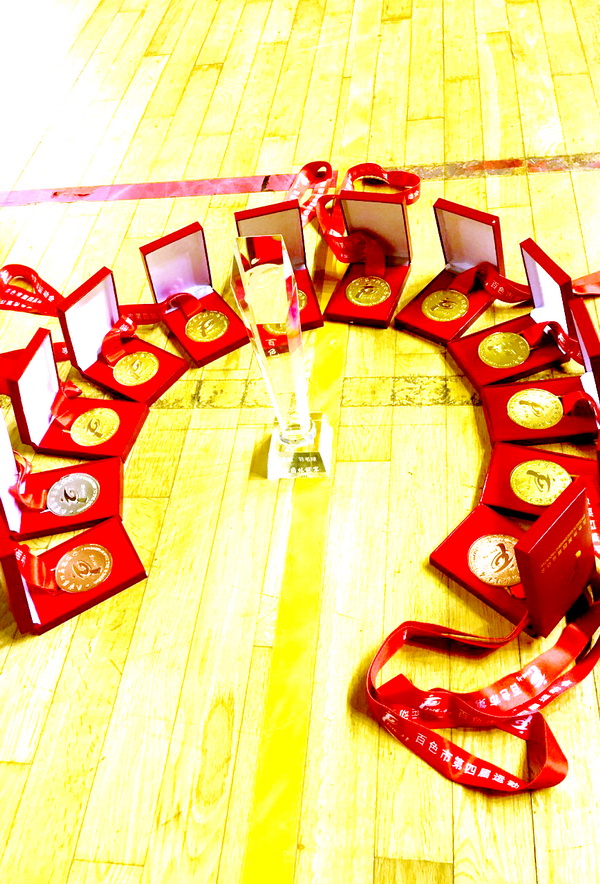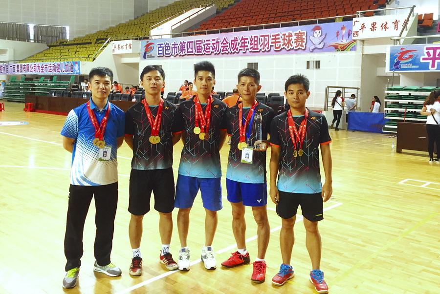 百色市第四屆市運(yùn)會(huì)于5月18日-5月22日在平果縣體育中心揭開(kāi)戰(zhàn)幕,集團(tuán)派出以集團(tuán)副董事長(zhǎng)黃樹(shù)威、集團(tuán)總裁助理譚波領(lǐng)銜的7名隊(duì)員參加了為期四天的羽毛球賽,集團(tuán)健兒們沉著應(yīng)戰(zhàn),不畏強(qiáng)手,賽出風(fēng)格,賽出水平,成功衛(wèi)冕含金量最重的男子團(tuán)體冠軍,男雙單項(xiàng)冠軍,并首奪男單冠軍,一共斬獲三金二銅的好成績(jī),集團(tuán)代表團(tuán)成為本屆百色市運(yùn)會(huì)羽毛球項(xiàng)目最大的贏家!