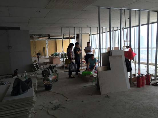 7日上午,鄧安杰董事長(zhǎng)在完成此次行程的其他工作后,顧不上午休就到了位于廣州市海珠區(qū)的集團(tuán)廣州總部辦公室的裝修現(xiàn)場(chǎng)進(jìn)行現(xiàn)場(chǎng)指導(dǎo)。在施工現(xiàn)場(chǎng),他深入細(xì)致地向現(xiàn)場(chǎng)施工的人員進(jìn)行專業(yè)的指導(dǎo),對(duì)各個(gè)辦公室的裝修格局的定位、室內(nèi)辦公家俱的配置以及各種材料的選定都進(jìn)行了耐心的指導(dǎo),并明確指出廣州總部是集團(tuán)面對(duì)全國(guó)的窗口,裝修工程一定要高標(biāo)準(zhǔn)、嚴(yán)要求,既要節(jié)約資金又要達(dá)到高大上的裝修標(biāo)準(zhǔn),盡最大可能追求完美。