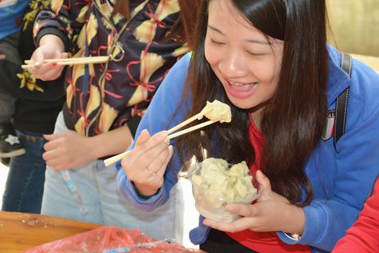 圍著大圓桌的同胞們有說有笑的包著餃子,我們集團的女同胞們不僅是工作上的能手,生活中也是心靈手巧。圓圓的餃子皮象征著團圓,愿我們不管在什么環(huán)境下都能團結(jié)一心的為著同一個目標(biāo)而努力奮斗。
