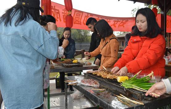 集團燒烤樂無窮,歡聲笑語不休停。何羨神仙安閑道,真正逍樂在人間。