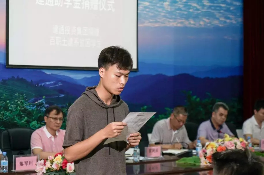 最后百色職業(yè)學(xué)院黨委委員農(nóng)樂(lè)設(shè)致答謝辭,感謝建通投資集團(tuán)對(duì)百色職業(yè)學(xué)院的支持,對(duì)貧困同學(xué)捐助,并鼓勵(lì)受資助同學(xué)要志存高遠(yuǎn)、自強(qiáng)不息,以良好的心態(tài)戰(zhàn)勝眼前的困難,以社會(huì)的關(guān)愛(ài)為動(dòng)力,勇于實(shí)踐,早日成才,有朝一日能傳遞愛(ài)心,報(bào)效祖國(guó),回報(bào)社會(huì)。