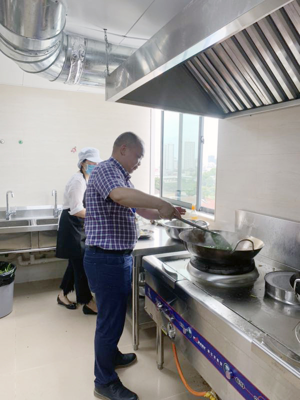 全新的職工食堂整潔溫馨,廚具設(shè)備干凈衛(wèi)生,各類設(shè)施一應(yīng)俱全。職工們自覺在窗口排隊(duì)取餐,秩序井然,坐在寬敞明亮的食堂里,愉快的享用著新鮮美味的飯菜,大家一上午工作的疲憊似乎也隨之而去。“自家食堂做的飯菜不但衛(wèi)生有保障而且還好吃!”……一聲聲贊美之語中,職工們紛紛豎起大拇指為集團(tuán)南寧總部職工食堂點(diǎn)贊。大家真切感受到來自集團(tuán)無限的關(guān)懷。營業(yè)當(dāng)天,集團(tuán)副董事長謝乃鵬還親自下廚為大家烹制美食。
