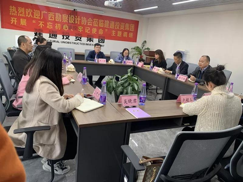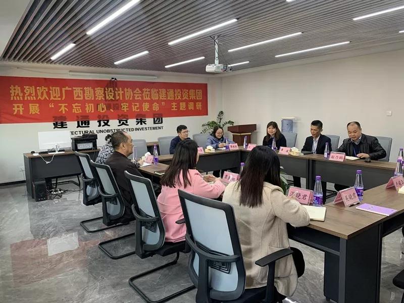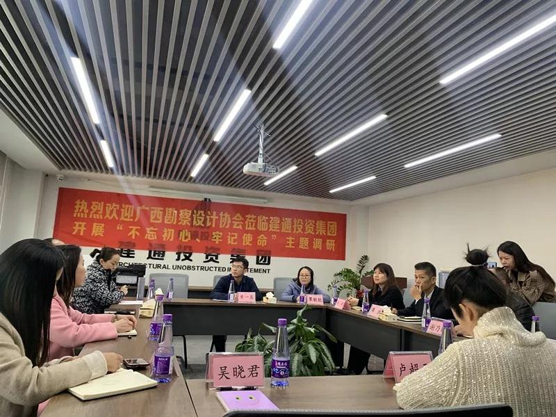 2019年12月9日,廣西勘察設(shè)計和重點工程協(xié)會黨支部書記兼廣西勘察設(shè)計協(xié)會副理事長、秘書長覃燕娜,廣西勘察設(shè)計協(xié)會副理事長兼常務(wù)副秘書長王桂強等領(lǐng)導(dǎo)蒞臨建通投資集團(tuán)開展“不忘初心、牢記使命”主題教育調(diào)研活動,我集團(tuán)對各位領(lǐng)導(dǎo)蒞臨指導(dǎo)工作表示熱烈歡迎。