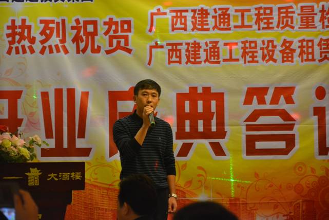 隨后,集團(tuán)副董事長兼桂昌公司總經(jīng)理、設(shè)備租賃公司總經(jīng)理黃樹威也對(duì)開業(yè)活動(dòng)做出了慶典致辭。他表示:廣西建通工程設(shè)備租賃有限責(zé)任公司是廣西建通投資集團(tuán)于2013年4月注資100萬元成立的具有獨(dú)立法人資格的子公司,業(yè)務(wù)范圍包括各種建筑設(shè)備、機(jī)械設(shè)備租賃的專業(yè)租賃公司,目前主要服務(wù)于百色市場(chǎng)。一年多來,設(shè)備租賃公司在集團(tuán)的正確領(lǐng)導(dǎo)下,以提供“專業(yè)、迅速、安全”服務(wù)為目標(biāo),著重營造集安裝、拆除、維修于一體的高素質(zhì)員工隊(duì)伍,先后參與了百色地區(qū)多項(xiàng)重點(diǎn)大型工程建設(shè),與一批優(yōu)秀的建筑企業(yè)建立了良好合作關(guān)系?,F(xiàn)公司擁有全新卡特320D挖掘機(jī)一臺(tái)、外架鋼管1000噸,扣件9萬套及相關(guān)機(jī)械設(shè)備,全部用于建筑工地的施工生產(chǎn)需求。2015年建通設(shè)備租賃公司將全心全意為客戶服務(wù),急客戶之急、想客戶所想,力爭(zhēng)做到讓每一位合作伙伴用得省心!用得稱心!用得放心!