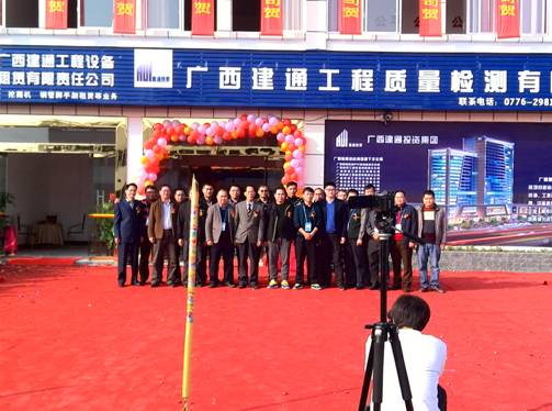 2015年1月17日下午,陽光明媚,微風和煦。在百色市龍景區(qū)龍旺路新開發(fā)的榮新機械城工程機械市場,集團檢測公司、設備租賃公司入駐的一幢兩層樓房,修葺一新。大門前廣場鮮花錦簇,彩旗招展,人頭攢動,鼓樂喧天。眾多嘉賓與集團領導及集團員工一道,在鮮艷的紅地毯兩旁翹首期盼。15時58分,現(xiàn)場鞭炮齊鳴,掌聲雷動,廣西建通工程質(zhì)量檢測有限責任公司、廣西建通工程設備租賃有限責任公司開業(yè)揭牌儀式隆重舉行!
