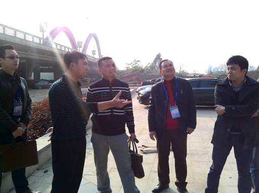 參觀結束后,開業(yè)儀式告一段落。鄧董事長心系建通·時代廣場項目的建設,在集團副總裁黃承理,房地產(chǎn)及營銷策劃部工作人員的陪同下,鄧董事長首先對與建通時代廣場接壤的市政府重點工程濱江大道的建設情況進行了實地查看。截至發(fā)稿時止,濱江大道已鋪設完碎石基礎,即將鋪設水穩(wěn)層。當鄧董事長得知春節(jié)前濱江大道可完成瀝青路面鋪設后,十分高興的指出:“濱江大道的建設是迎龍區(qū)的發(fā)展紐帶和輻射源,它的建設將奠定迎龍區(qū)核心區(qū)域發(fā)展重心,極大的推動樓盤的商業(yè)價值和品牌價值,與其他項目對比,更加凸顯了我們項目的核心區(qū)位優(yōu)勢、交通優(yōu)勢與配套優(yōu)勢,因此對我們的樓盤具有非常重大的意義!”隨后,鄧董事長來到1#樓廣場前察看外墻裝修及電梯廳裝修情況。截至發(fā)稿時止,1#樓外墻裝修玻璃幕墻骨架已搭設完畢,正在安裝部分玻璃。鄧董事長走進跟前察看工人安裝玻璃工作,對安裝的進度效果表示滿意,他指出:“按照目標計劃,1#樓將在春節(jié)前外墻要首先裝修完畢,屆時將把廣場的整體效果體現(xiàn)出來,為即將在廣場舉辦的重要活動創(chuàng)造良好的景觀條件。”行程最后,鄧董事長還對時代廣場的其他棟號的建設情況一一進行了察看,并對下一步的施工作業(yè)的開展作出了重要的部署。