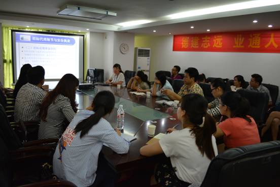 圖為檢測公司總經(jīng)理陸虹任在講授檢測業(yè)務知識
